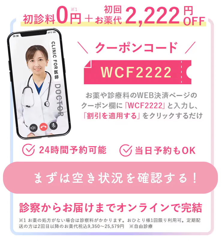 - 当サイト限定!クーポン利用で初診料0円※1&初回お薬代2222円OFF※2!短期間で-12kg♪※3